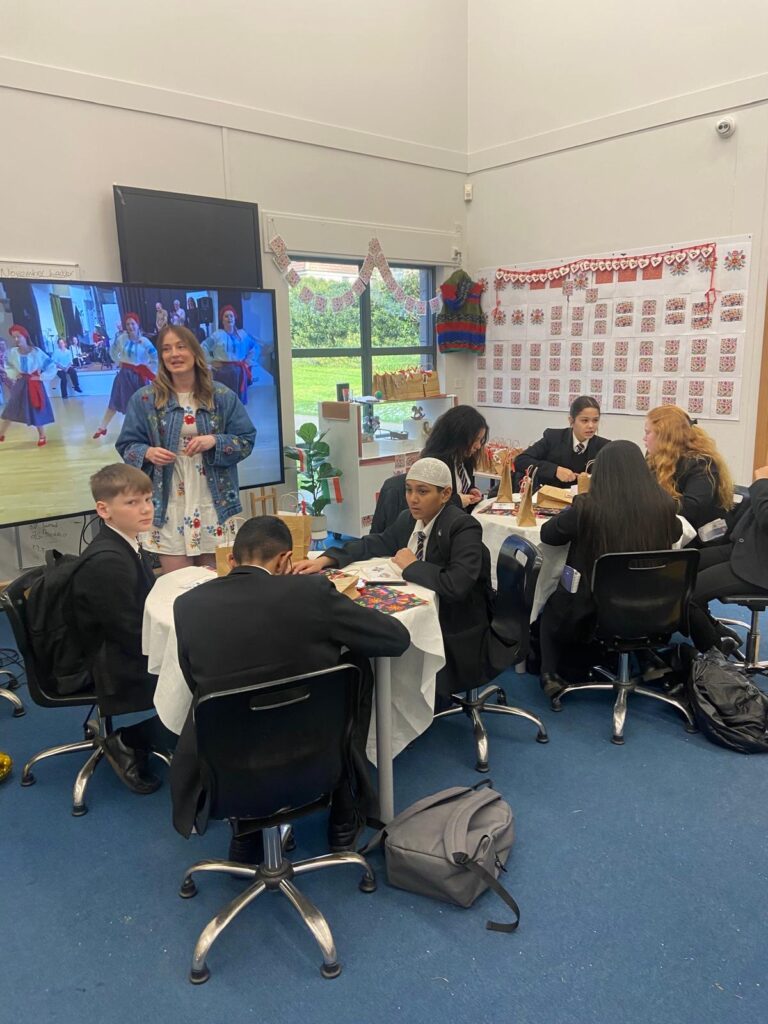 In Europe the students learnt about Folk Art with Miss Slater and had the opportunity to make their own folk patterns before sampling European cheeses and Hungarian delicacies. In addition to this we had an ex 6th Form Student, Lydia come in on behalf of the Bradford Ukrainian Society to talk about Ukrainian culture, dancing and community projects with the students.