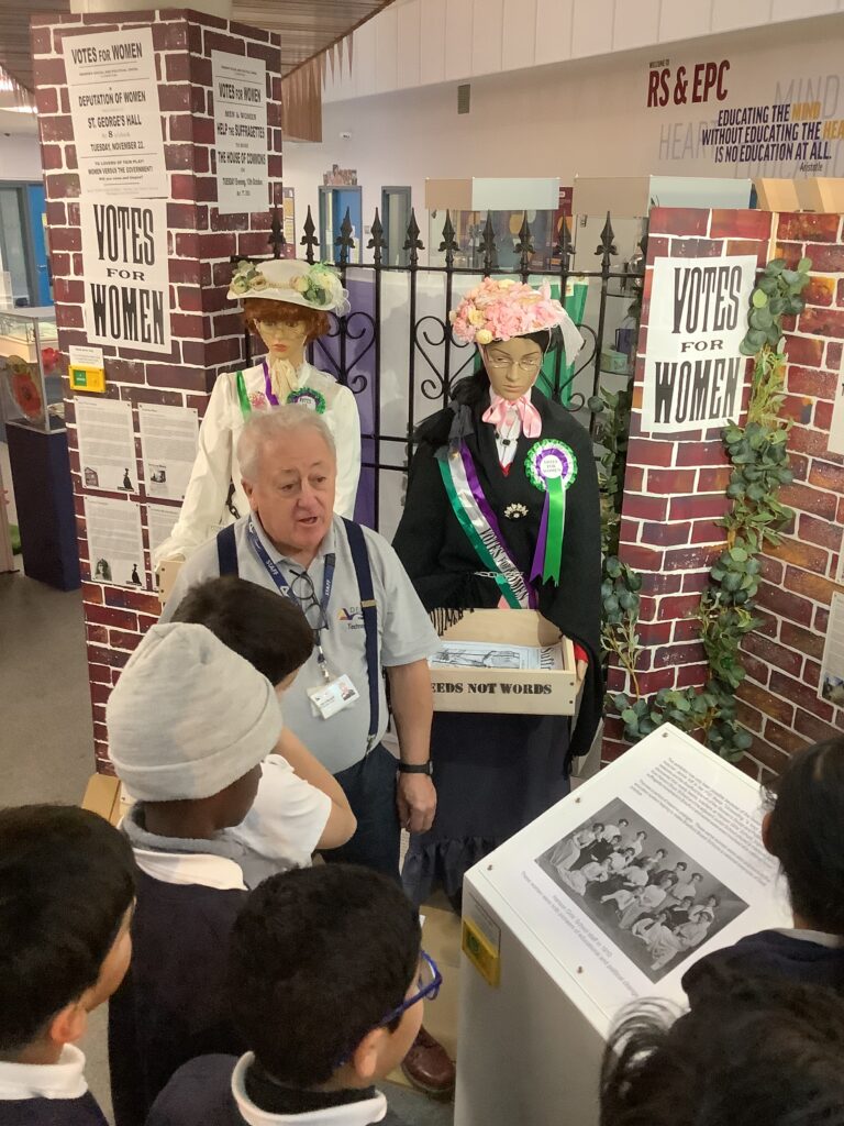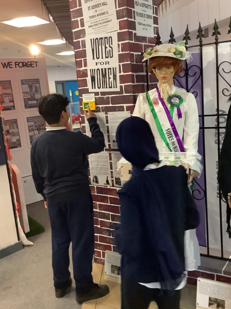 On Tuesday 9th December a party of 12 Y6 pupils from Peel Park Primary School visited the Museum at Hanson Academy to find out about the 23 suffragette teachers who campaigned for women’s rights to vote before the first World War. The museum documents the life of these impressive ladies who played such a vital role in securing the rights for women to vote and the exhibition is based around the research undertaken by local historian Jennie Kiff.