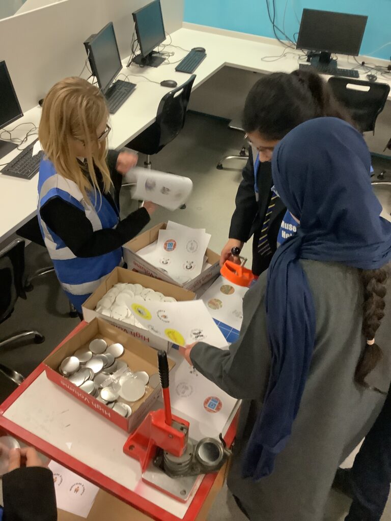 As well as learning about the lives of these ladies and the original Hanson Schools on Byron Street, the children were engaged in making button badges and defacing coins with messages exactly as the suffragettes did all those years ago. In addition, they used rubber stamps to print pictures of suffragettes, adding their own slogans to the banners they carried.
